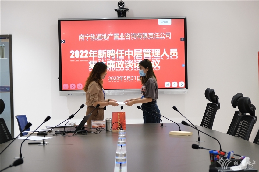 為進一步增強廉潔從業(yè)意識,筑牢拒腐防變思想防線。531日下午,軌道地產(chǎn)咨詢公司黨支部書記、董事長、總經(jīng)理()劉燕同志組織軌道地產(chǎn)咨詢公司2022年新聘任的四名中層領(lǐng)導(dǎo)干部召開集體廉政談話會議,會議由軌道地產(chǎn)咨詢公司黨支部紀(jì)檢委員李佳潞同志主持。