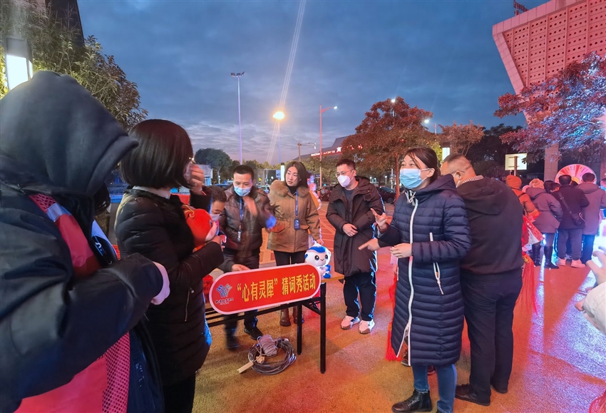 紅火的燈籠掛在枝頭,濃濃的年味已在廣場上蔓延,燈籠上懸掛有節(jié)日燈謎以及黨的二十大知識、民族團結(jié)知識、廉潔知識、垃圾分類知識、安全生產(chǎn)知識的題目。大家三五成群看謎面、猜謎語,沉浸在猜謎解謎的樂趣中。這種寓教于樂的方式,充分調(diào)動了大家學(xué)習(xí)的興趣,大大提高了黨員教育的實際成效。