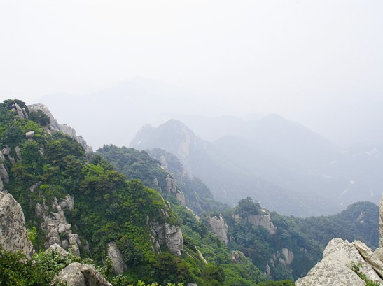 我們的行程很快,在下纜車后迅速到達(dá)南天門開始向玉皇頂進(jìn)發(fā),然后終于來到了向往已久的泰山摩崖石刻處。作為泰山的標(biāo)記之一,站在《紀(jì)泰山銘》的刻石下面,仰望這部唐玄宗的"封"山之作,頓時覺得自己十分渺小,泰山獨(dú)有的莊嚴(yán)神圣和巍峨磅礴撲面而來,讓我完全拜服于泰山的獨(dú)特魅力之中。隨后我們登上了泰山之巔--玉皇頂。在玉皇頂回身俯視天地,終于在課本之外親身體會感受到杜甫"會當(dāng)凌絕頂,一覽眾山小"這句千古絕唱的韻妙之處,也真切的領(lǐng)會到"登泰山而小天下"的無與倫比的雄偉霸氣所在。