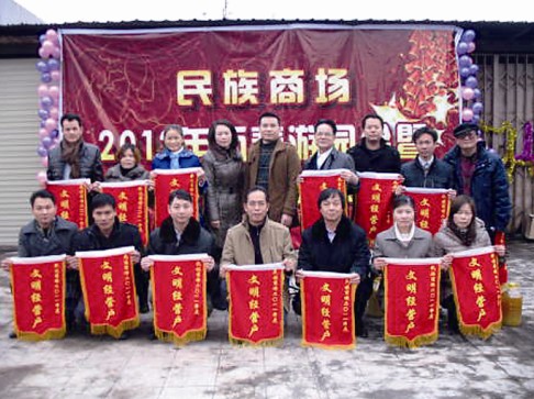 2012年1月6日下午,商場(chǎng)五樓天面人聲鼎沸、喜氣洋洋,商場(chǎng)全體員工與商場(chǎng)幾百名經(jīng)營戶歡聚一起,成功舉辦了商場(chǎng)2012年度迎春游園會(huì)暨2011年度文明經(jīng)營戶表彰大會(huì),楊錦清、鄧振芬等15名商場(chǎng)文明經(jīng)營戶獲得了表彰。