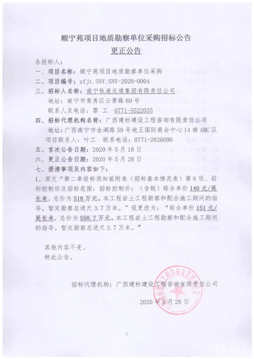 順寧苑項目地質勘察單位采購招標公告更正公告